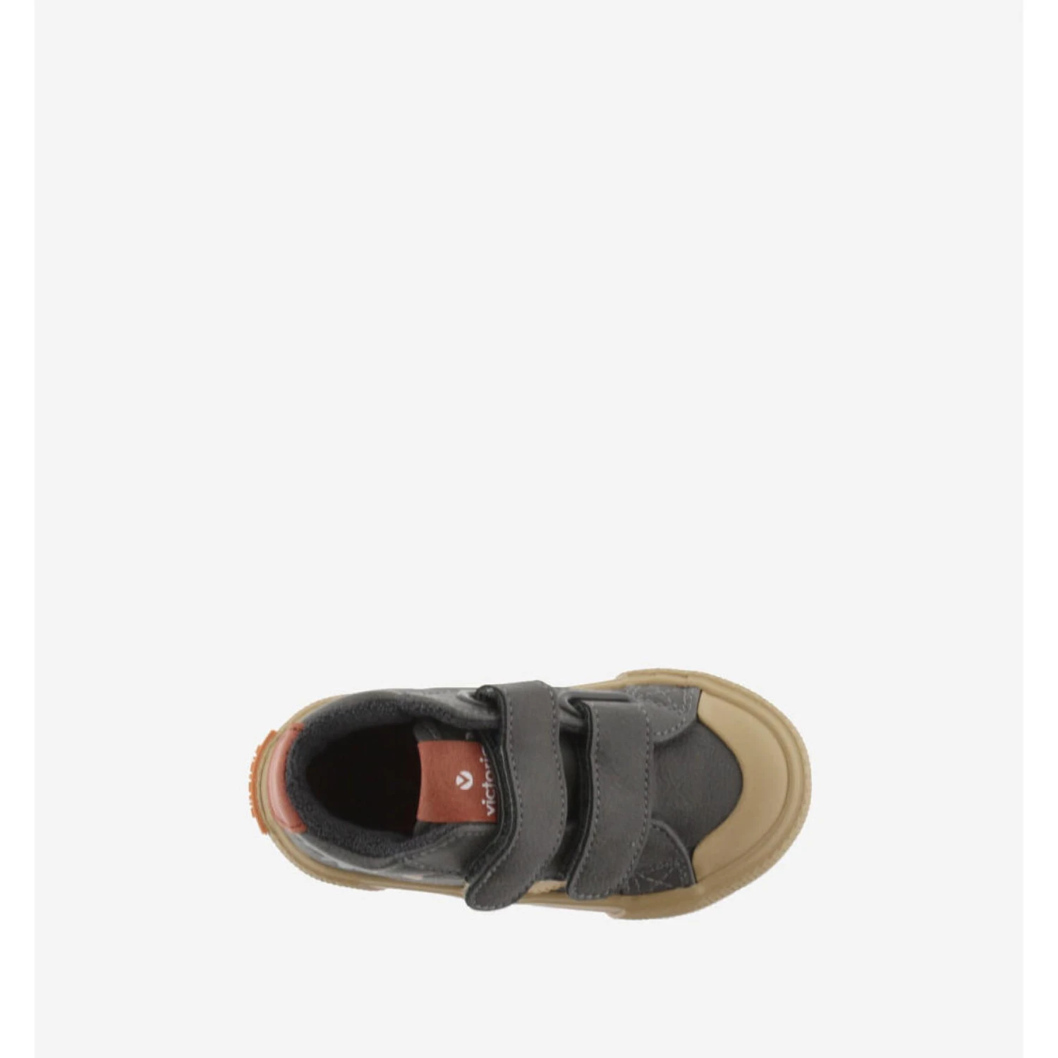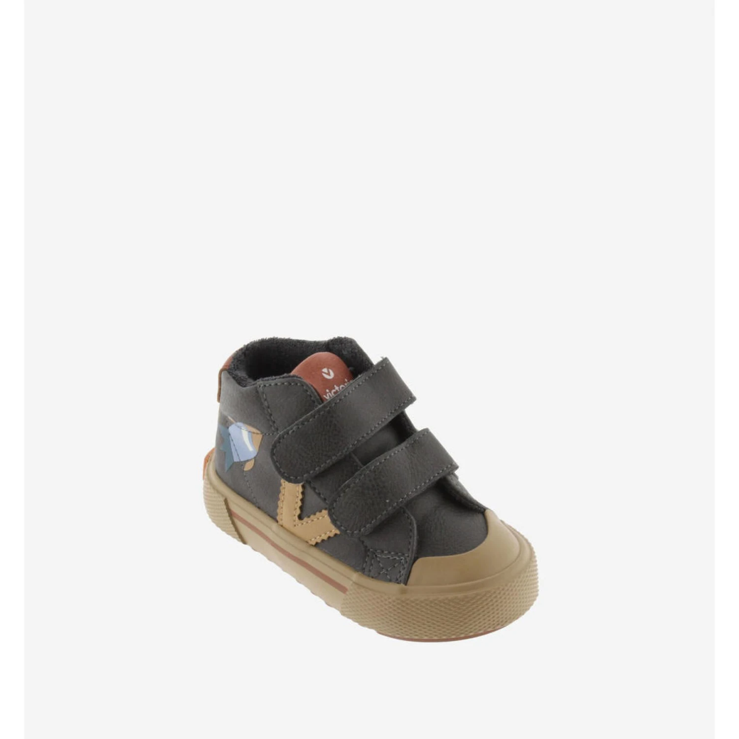 Children’s booties in leather-effect material with victoria logo on side. Twin model with space print for an original touch to their looks. Brown sole and matching color line on the back. Velcro fastening for easy slip-on and rubber toe reinforcement for added durability. Their high-density sole guarantees greater comfort.