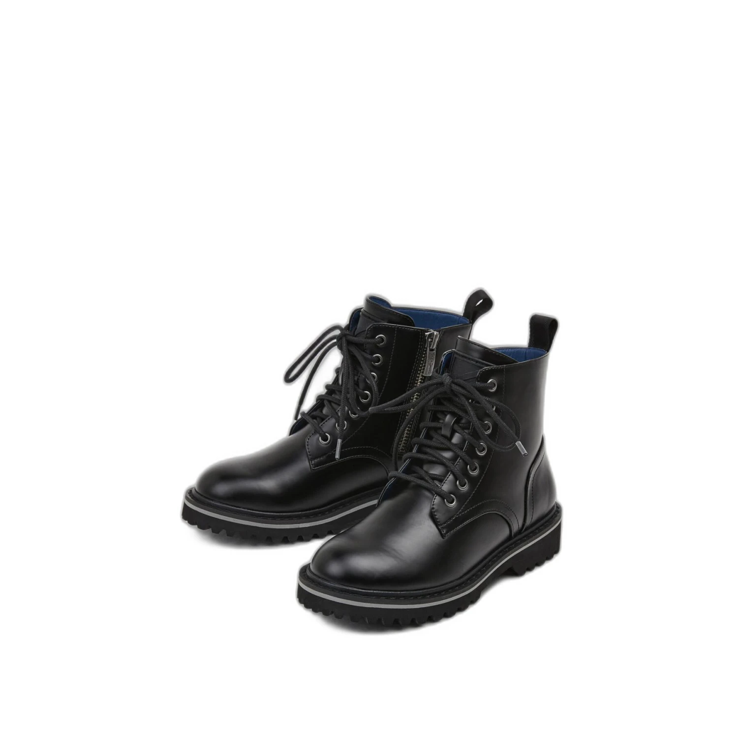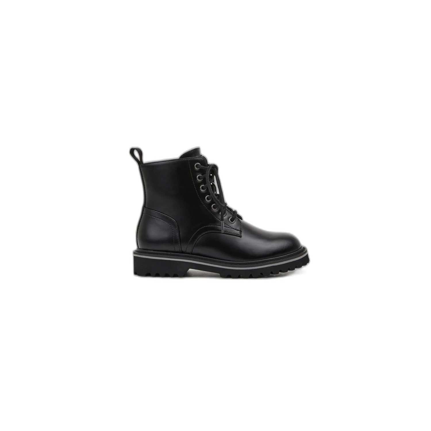 Eco-leather boots – Padded ankle and tongue – Lace-up closure – Zipper closure – Logo on back – Back zipper