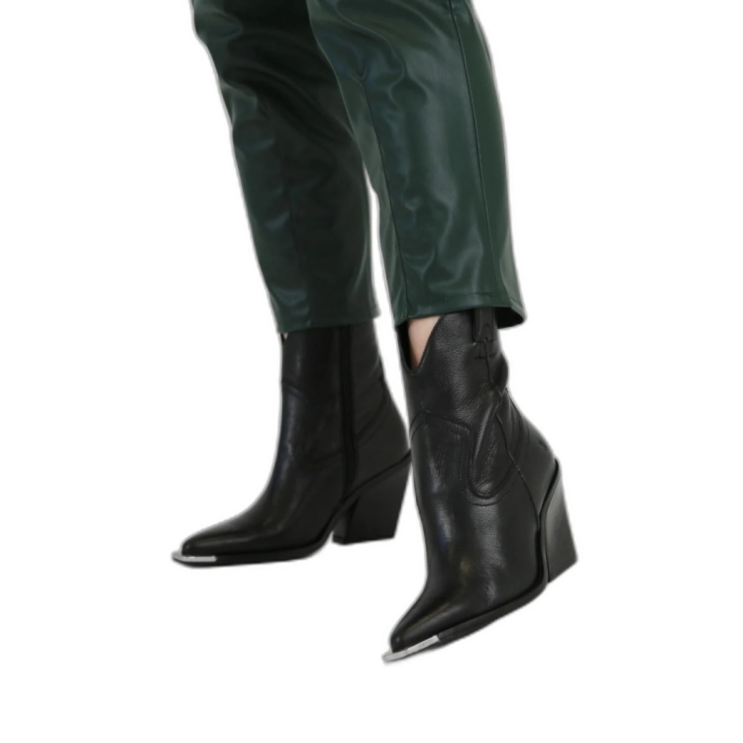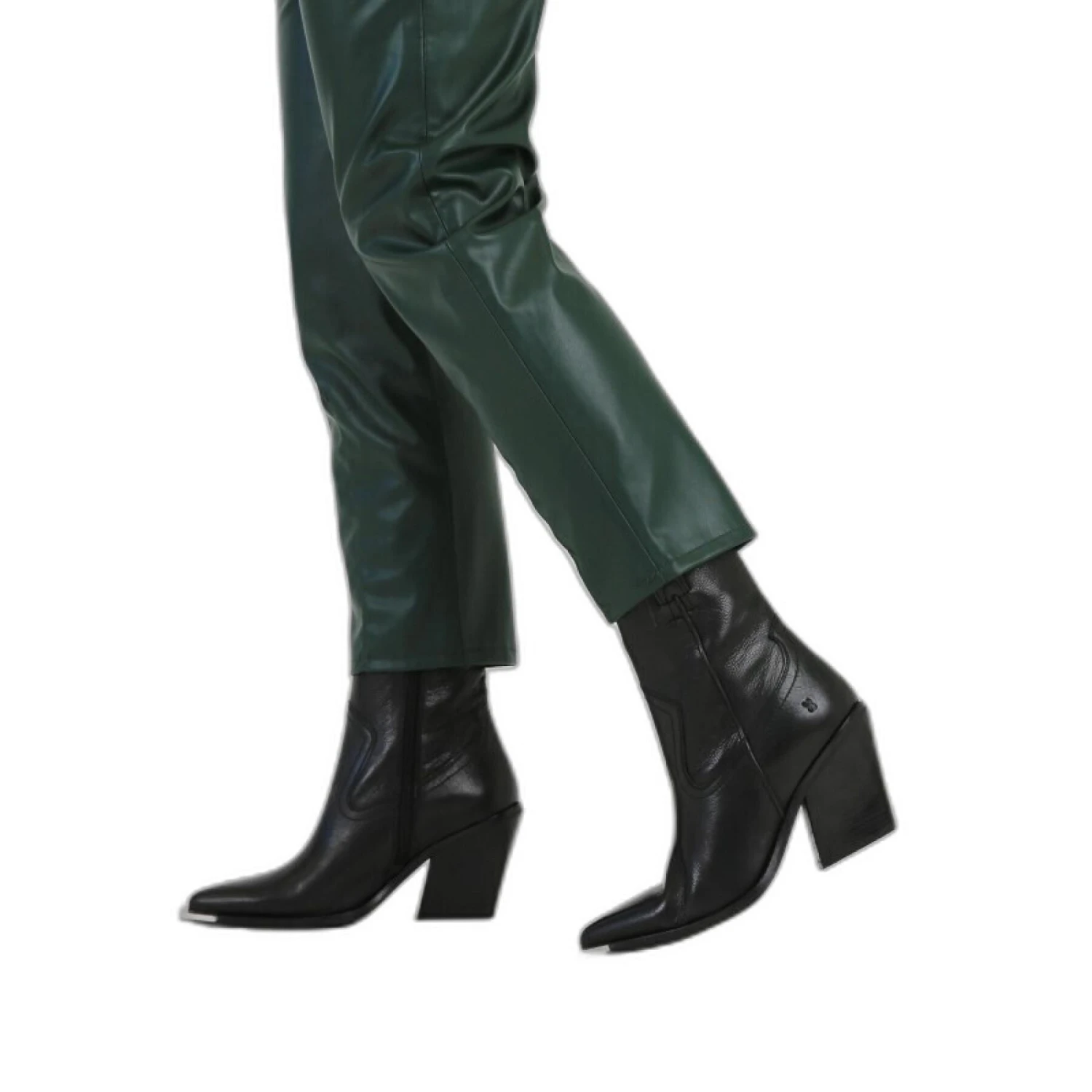 A love at first sight! The New-Kole is perfectly in line with the cowboy trend that we see all over the world this season. This bootie has a 9 cm heel and a 14 cm shaft height.Durability A shoe consists of three parts, namely: the upper, the lining and the sole. When one of these parts is 50% or more durable, the shoe receives our “more durable” label. This shoe earns the more sustainable label due to the use of more sustainable cowhide and sheep leather (certified by the Leather Working Group). Read about our roadmap to a zero footprint here.Closure:ZipperCollection:SS’22WESTERColor:BlackHeel Height:9 cmSole Material:SyntheticMade in: IndiaInterior Material:Interior Material:LeatherUpper Material:LeatherMore Durable:YesOutsole Material:RubberRemovable Outsole:NoShaft Height:14 cm